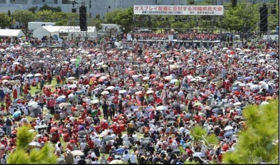 日本冲绳地区10万多名民众9日集会,反对美军在当地部署“鱼鹰”运输机。