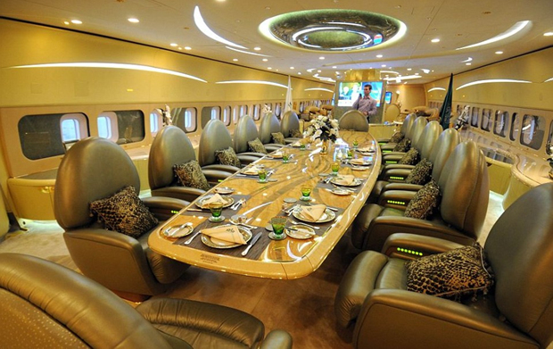 沙特王子阿尔瓦利德波音747私人专机里的餐厅。