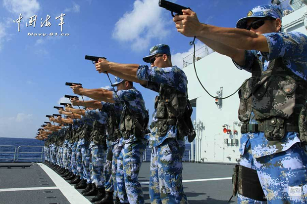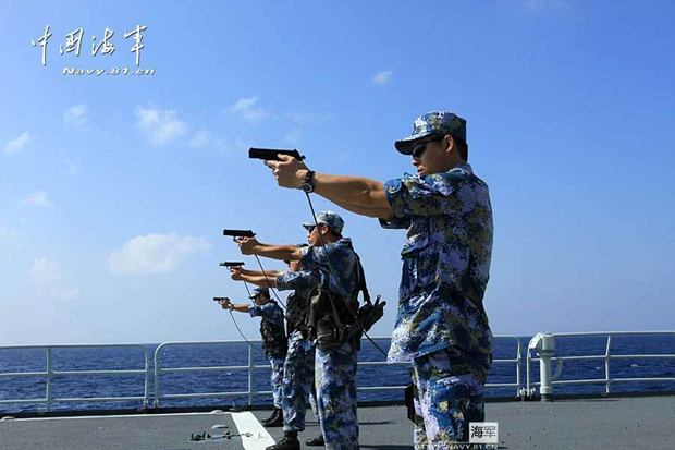2月27日上午9时(北京时间中午12时),中国海军第十四批护航编队首次组织“哈尔滨”舰、“绵阳”舰、“微山湖”舰3艘舰艇特战队员进行实弹射击训练。