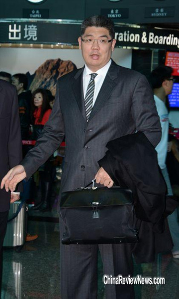 陪同的,除了儿子连胜文之外,还有卅多名台湾政商人士,包括前海基会董事长江丙坤、新党主席郁慕明、以及润泰集团总裁尹衍梁,鸿海集团董事长郭台铭则早一步抵达大陆;根据规划,连战一行到北京后,国台办主任王毅、海协会会长陈云林将设宴接风,廿五号上午九点,在人民大会堂,拜会中共中央总书记习近平,晚上和中共北京市委书记郭金龙共进晚餐,廿六号与国家主席胡锦涛以及全国政协主席贾庆林见面,由于连战是习近平上任总书记三个月来,第一位公开会面的台湾政界人士,双方届时释放出的讯息,令人好奇。图为连战儿子连胜文。