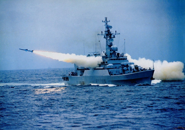 资料图:海军江卫级铜陵舰发射反舰导弹