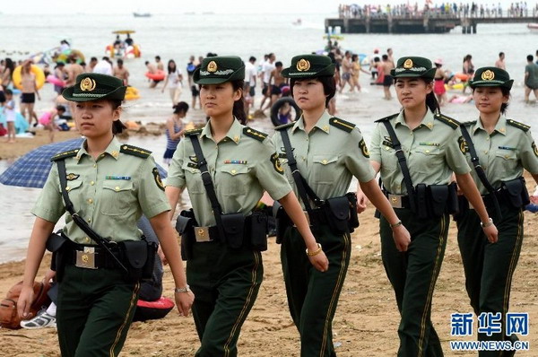 日前,避暑胜地河北秦皇岛正值旅游旺季。由秦皇岛市西河南边防派出所10多名女警官组成的女子巡逻队,每日守护在游人如织的南戴河海滨,维护景区秩序,帮助旅客排忧解难,每天工作11个小时,受到广大游客的赞誉。