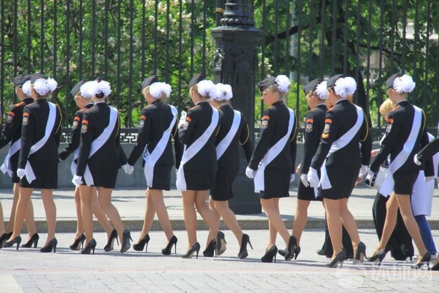 俄美艳军校女生集体亮相合影 一排美腿(1)(2)