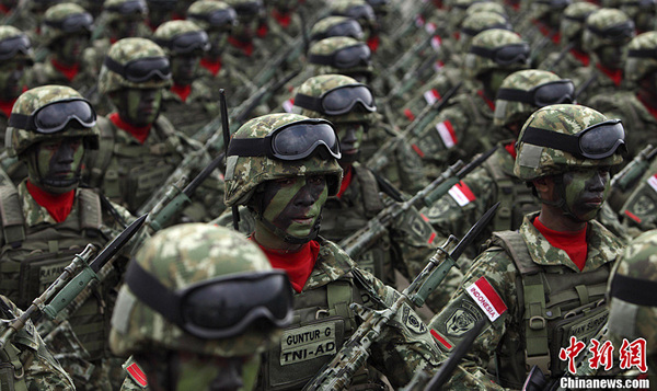 图片 高清:印尼阅兵式女兵方阵神采奕奕(1)(2)_足球即时比分_球探体育-投注官网