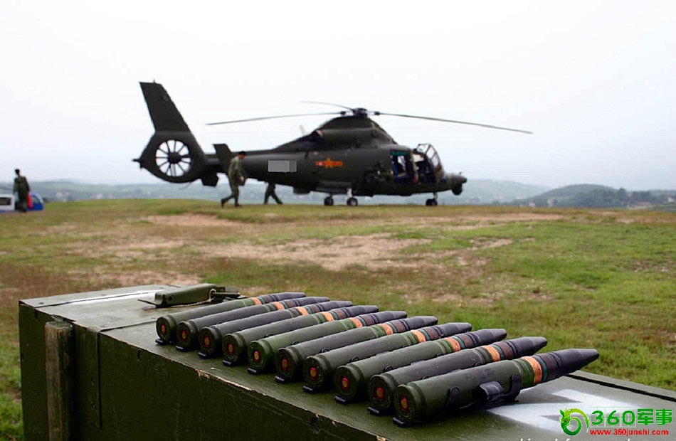 环球网国际军情中心2012年5月21日消息:解放军陆军航空兵部队装备的首种攻击直升机,国内代号WZ-9,外销代号Z-9G。武直九型直升机,是由哈尔滨飞机制造公司在直九甲型直升机的基础上,改装出来的攻击直升机